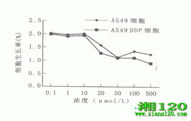 DDP细胞的生长抑制率(IC)。经预实验选择0.1、1.0、10、20、50、100、