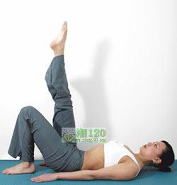平躺于垫上,双臂放于体侧,一腿上举,另一腿伸直或弯曲放于地上,腹部收紧,腰背部紧贴地面,吸气时上腿划圈,呼气时回到起点停住,一个方向做4~6次,然后换反方向绕环4~6次。