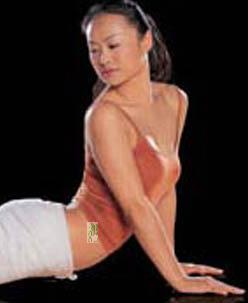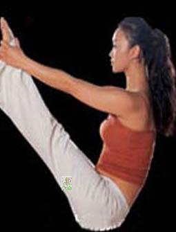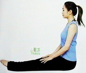 收腰腹作用:收紧腹肌,使凸出的胃部紧缩上提,改善内脏器官下垂,修正腿部线条,矫正脊椎。双脚前伸坐正,屈双膝,两手握住脚底,将膝盖拉向胸前。吸气,伸直背部,挺胸,调整呼吸,双手将双脚拉高,膝盖伸直,以尾椎骨为支点,保持身体平衡,自然呼吸5次。呼气,缓缓恢复到起始坐姿。