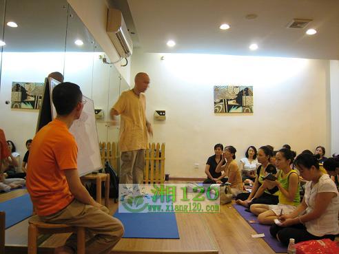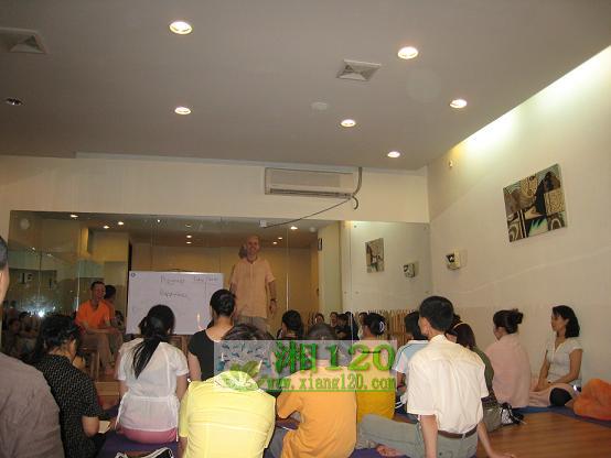 桑克依他瑜伽大师来临讲课,大师是瑞士人,修练瑜伽二十多年,长期在印度、澳大利亚、台湾传授瑜伽,精通瑜伽哲理,曾受邀到广州各大瑜伽馆讲课.