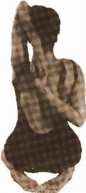 3. 两手扣合之后,努力使左肘向上抬起。脊柱要保持正直、稳固,目视前方,正常呼吸。保持这一双手扣合的姿势10秒。那些双手不能扣合者,应该尽量把手伸到最大限度,并保持这个姿势5秒。这种双腿跪坐、两手扣合的姿势,为牛嘴式。(如图2)