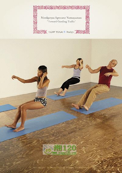 FLOW瑜伽与其他瑜伽一样追求身心灵的平衡,所以他们将生活中所经历的情形用瑜伽重演,以示该瑜伽馆可以让你达到某种程度。第一张即是在公路上驾车等红灯的情形,第二张是在睡椅上看电视的情形,第三张是在公交车上的情形。虽然这很常见,但真正用瑜伽做起来可就不简单了啊!