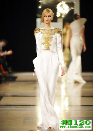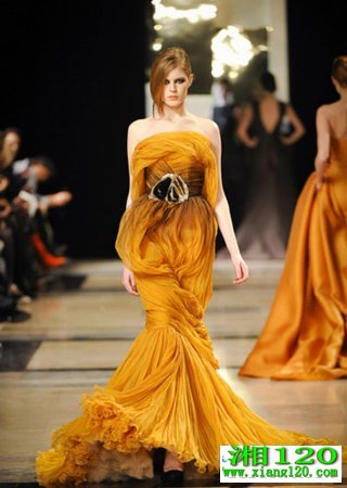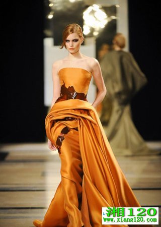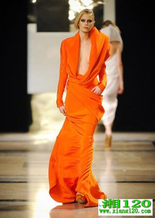 有范儿的新娘一定想要在最重要的日子找件独一无二的礼服。大胆出挑的性--感设计,用以明快亮眼的橘色调和了模特的锐利气势,而百搭的黑白双色绝对会让你过目不忘。这样有范儿的,新娘们敢尝试吗?