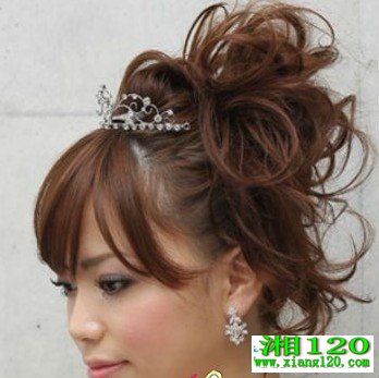 这款卷发盘发,用迷乱蓬松的发型设计打造樱花般灿烂的时尚发型,刘海散落下来犹如仙子般搭配可爱小皇冠发饰更是可爱。
