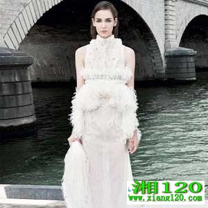秋冬纪梵希 (Givenchy by Riccardo Tisci) 高级定制犹如天使般圣洁纯净,而大面积的透视也绝非一般人可以驾驭。从婚纱礼服端庄而柔美的角度来说,薄纱长裙搭配羽毛装饰也许会更符合新娘的气质。