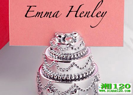 Bling Bling……银色蛋糕席位卡支架让整个餐桌耀眼起来。这款可爱的席位卡支架一定是女性来宾的最爱,用它来夹名片或立拍得照片应该也不错。