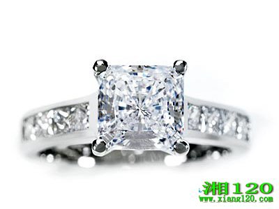 四角形状的新娘钻石戒指,弧面设计的指环和3克拉四切面的钻石,几乎是所有人心目中完美婚戒的代表,非常简单的设计却透露出一股大气感。