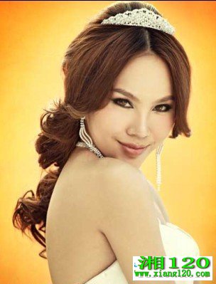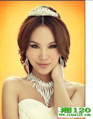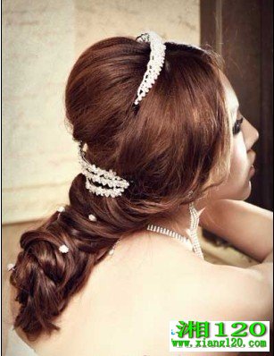 韩式永远是温婉派的代表,是所有新娘钟爱的不二之选。韩式新娘的春美妆容,无处不流露着新娘的甜美、纯情。淡淡的裸妆,典雅的钻饰波浪的发髻。