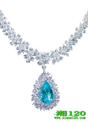 白金镶嵌帕拉依巴蓝碧玺项链