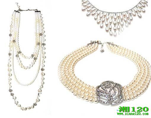以珍珠串链为例,就很适合搭配一字领、细肩带、卡肩式以及式的婚纱礼服,由珍珠串链的点缀,不仅能突显出新娘子颈部的优美线条,更能增添婚纱礼服高贵典雅的气质。