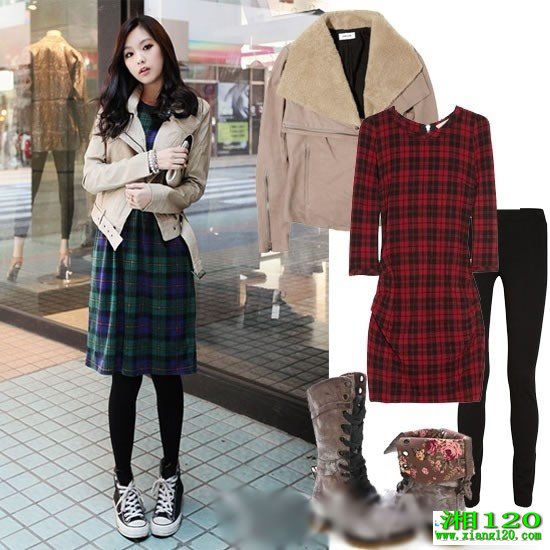 如果你敢尝试光腿的话,糖果色迷你连衣裙,可以穿在这样的速冻天,外搭一件超厚的百搭皮衣即可。