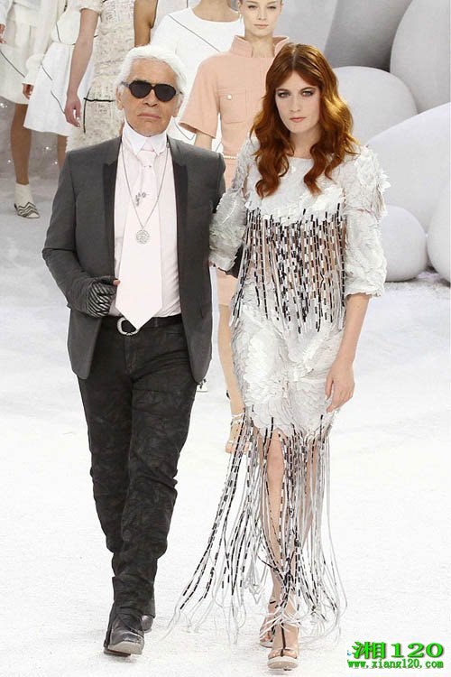 卡尔·拉格菲尔德(Karl Lagerfeld)和Florence Welch登台谢幕,结束这一期的海魂的新作发表会。