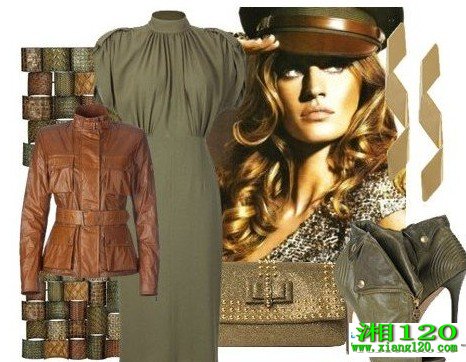 帅气军绿:军装风格的流行已不止两三年,在这个秋天依旧风头正劲没有过时。高腰褶皱连衣裙打破了军旅风的硬朗,帅气之中女人味十足。精干的皮衣夹克,收腰的款式令曲线乍现,再加上一双同色系的恨天高,帅气且性感。