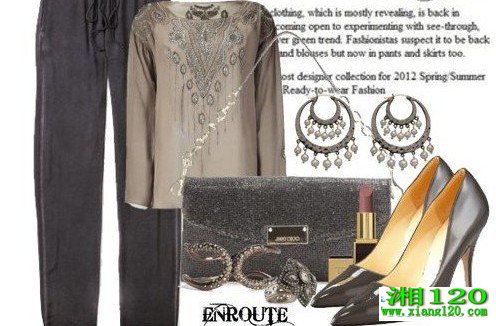 优雅灰:灰色着实很挑人,一不小心就有变大妈的可能,搭配得好却实在是优雅名媛再现。浅灰色刺绣丝质衬衫,带有浓郁的异域风情,宽松的深灰长裤女人味十足。一只做工精良的包包绝对是至关重要,优雅且精致的配饰是点睛之笔,怎一个优雅奢华了得。