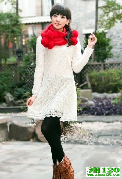 甜美连衣裙,玫瑰花加绒设计,面料非常柔软舒适,还很保暖哦,背后拉链设计,更添女人味,袖口处和裙摆处都有蕾丝镶边,女人味儿更足,双层设计,里面衬裙外层蕾丝玫瑰花,非常甜美精致,很有小公主的感觉。