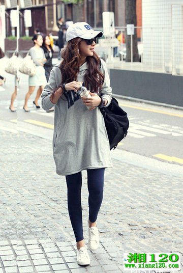 连帽款式,浅灰色连帽卫衣裙,清爽自然的大方款式。宽松随意的造型轻松穿搭出魅力时尚气息,遮掩赘肉效果也很值得称赞。