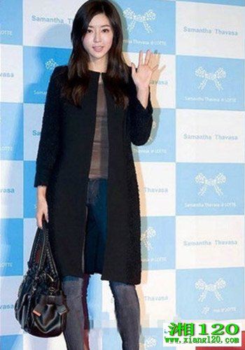 拼接的黑色修身大衣加紧身牛仔裤,黑靴黑包,每件单品都尽显女人味儿,妩媚时尚又极其简单。漂亮的大衣使得整个装扮都显的很有质感。