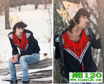 雪地里的王子,皇冠般的帽子,复古的T恤,很梦幻。