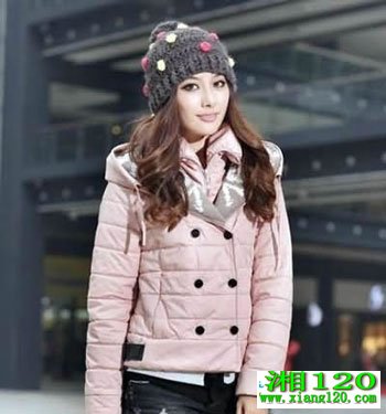 淑女百搭纯色双排扣加厚修身型棉衣棉服