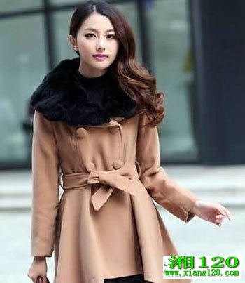 冬装女新款韩版纯色双排扣可拆卸毛领翻领裙摆加厚毛呢风衣。最爱的是不是上面那毛毛的领子呢?真是大爱的款呢!