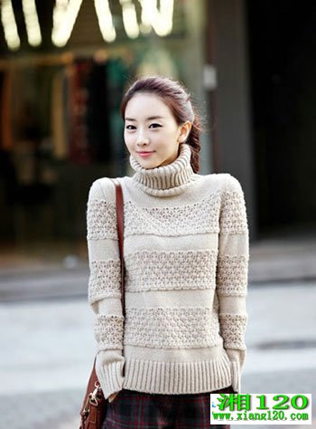 高领粗棒针毛衣