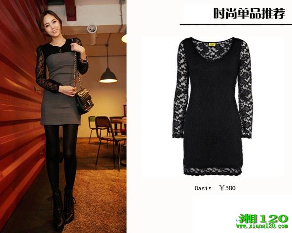 无论是蕾丝的袖子还是灰色的裹身裙都能散发出妩媚的情调,也会让身材的比例看上去更加协调,突出了S型身材。