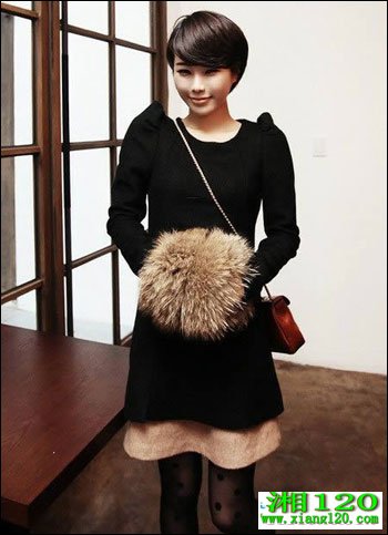 泡泡袖呢连衣裙