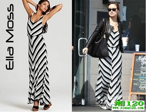 大条纹的连身裤,时尚抢眼,外搭配一件黑色小皮衣,个性又显帅气十足。