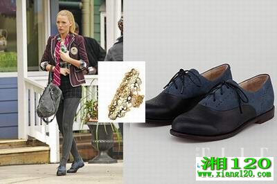 “绯闻女孩”Blake Lively这一身造型的看点实在太多了:格子花呢短裤+超长细条纹+竖条纹西装+温莎牛津鞋。因为身上的花纹有点多,所以造型朴实的包包的选择足矣。