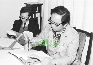 时任国家中医药管理局副局长的田景福(左)亲自指导编纂工作。