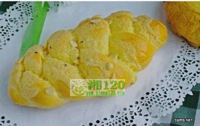 8、由绵白糖和柠檬汁熬制成糖浆,挂涂在凉透的麻花形面包上。将杏仁片均匀地撤在还未变硬的糖衣上。豆刮下来的浆液,食用油200克。