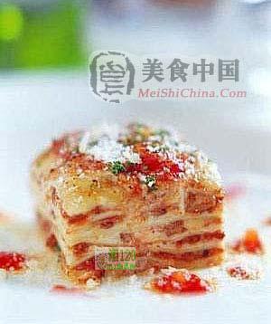 秘诀:作肉酱时所倒入适量的水可以高汤替代,且用量的多寡依实际的火力去增减。要判断千层面是否已烤熟了,可用一支竹签插入千层面中5秒后拉出,将竹签放至手腕处若有感觉到热热的即表示熟了。
