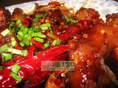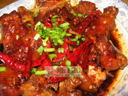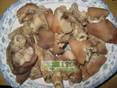 原料:猪手 姜 葱 八角 花椒 绍酒 冰糖 盐 味精 红辣椒 香叶 酱油 白胡椒 湖南剁椒 砂糖 香醋