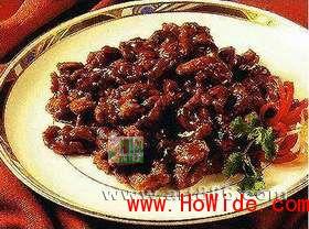 传统北京清真名菜,特点是形似新杏脯,色红汁亮,肉质柔软,食之香甜如蜜,回味略酸.