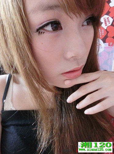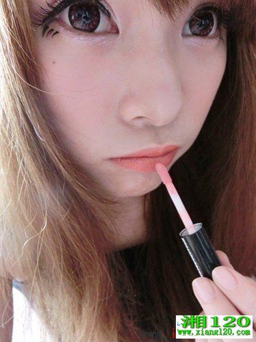 还有千篇一律的腮红~ 甜美度UP~口红这次MO用的是橘红色的~ 粉色的口红少女气息比较重~