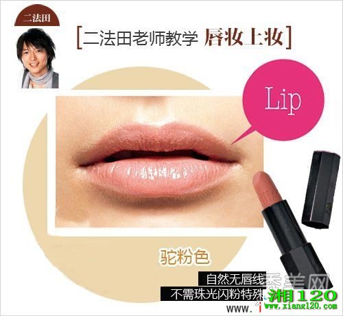 :为了配合整个的彩妆效果,唇膏不需要有类似珠光,闪粉等特殊功效,一般的既可以,比较浅的驼粉色就比较适合整个格调。