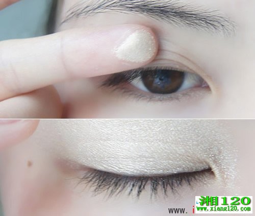 用b色系涂抹3分之1个眼窝(靠近双眼皮)