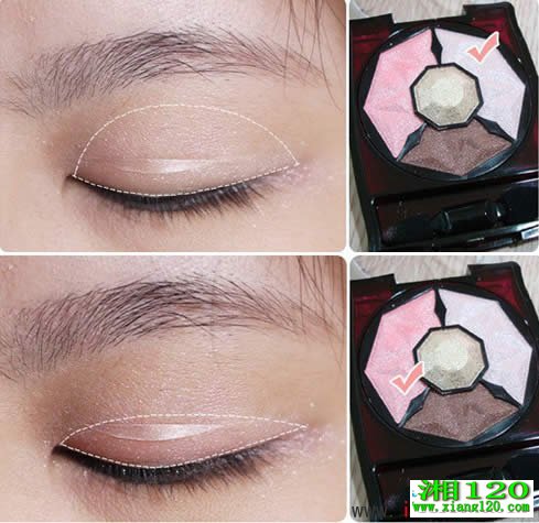 用手指沾取亮黄色…轻点在眼皮中间的眼球位置上