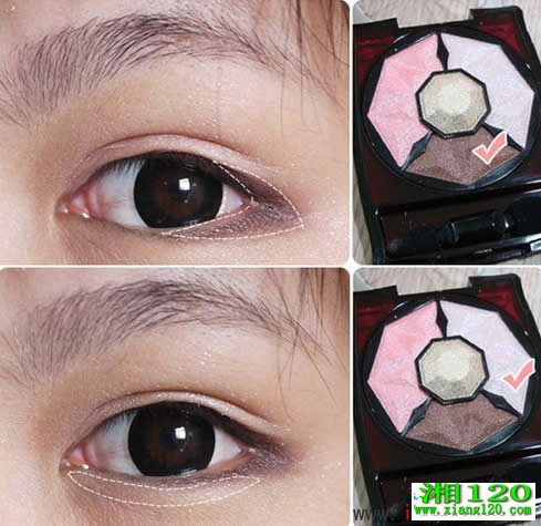 咖啡色眼影画在上下眼尾…成ㄑ字形