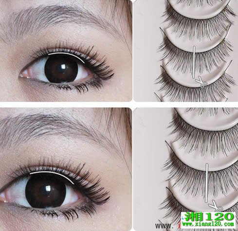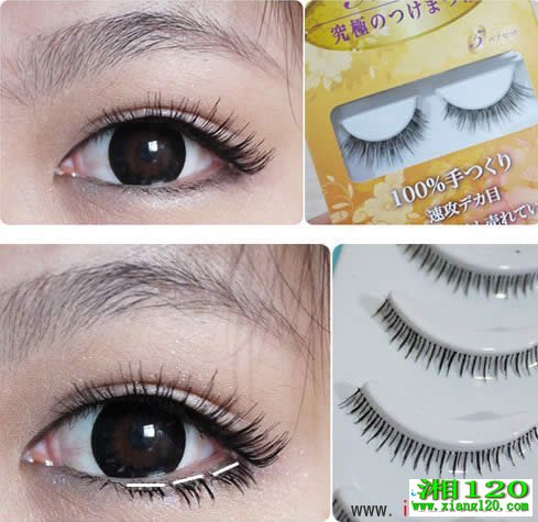 将一条下睫毛剪成6小片,一眼贴3片,拿小夹子夹起睫毛慢慢黏贴在下睫毛