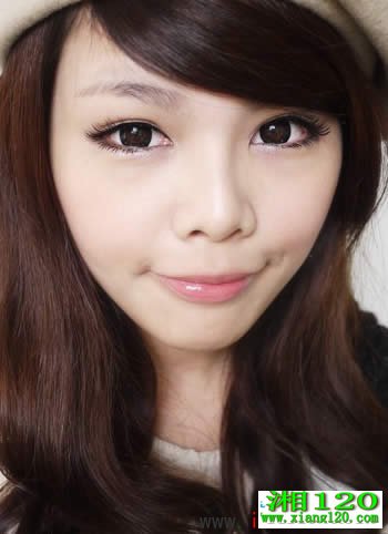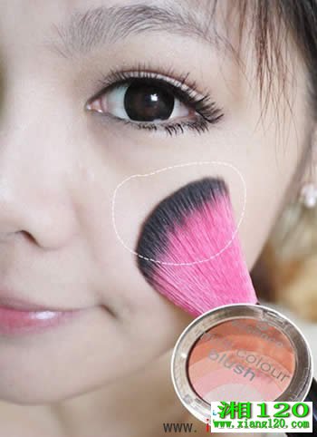在笑肌刷上腮红,范围刷大一点会比较可爱