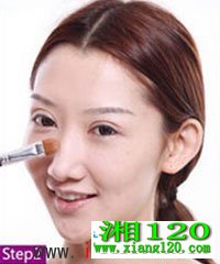 Step3.使用小号的刷子蘸取亮粉,在额头、颧骨、鼻梁和下巴处提亮,