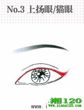 想要打造出上扬的猫眼,上眼线在眼尾处应适当加粗,并需要斜向上以大约30度的角度将眼线尾端自然上挑。自然连接上在眼尾处只画了不到1/3的下眼线就可以了。