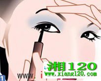 A:妆容成败全在眼线上,这个妆甚至可以省去眼影的涂抹,只要在眼尾的眼线处理上稍加留意,微微垂低和加粗眼线就能带出楚楚动人的眼神。