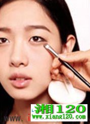 Step4.眼睑下方可以选择大地色系、带有光泽的眼影,避免使用色彩绚丽或烟熏色眼影。沿着眼线轻轻晕染开,只需一点起到提亮作用即可,让眼睛看起来清纯却又闪耀灵动感。