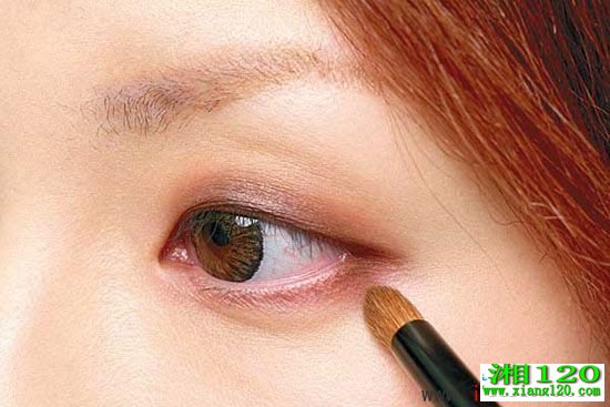 Step 2、眼尾三角位至眼珠下扫上浅啡色眼影。