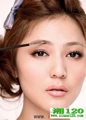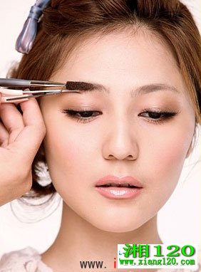 轻柔眉妆的一个关键点就是使用浅色的眉粉。使用介于肤色和眉色的中间色打底的话就可以营造出轻柔感,眉毛下面使用眉笔勾勒成直线型,如果是想把眉毛画粗的话一定要画眉毛下面。