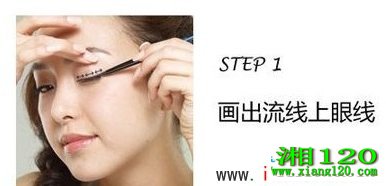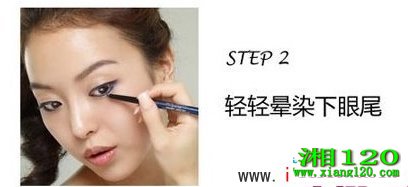 2.下眼线只需在眼尾处稍加晕染,呼应上眼线的曲线即可。