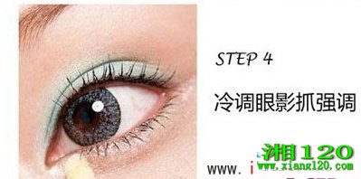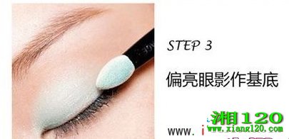 1.选择亮冷色系偏亮的眼影粉作为基础底色,均匀涂满整个眼窝,并将冷色眼影膏蔓延到内眼角,使眼神明亮起来。
