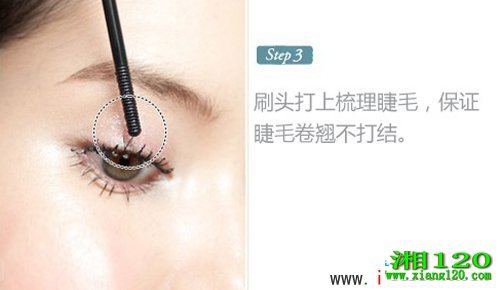 Step3:刷头打上梳理睫毛,保证睫毛卷翘不打结